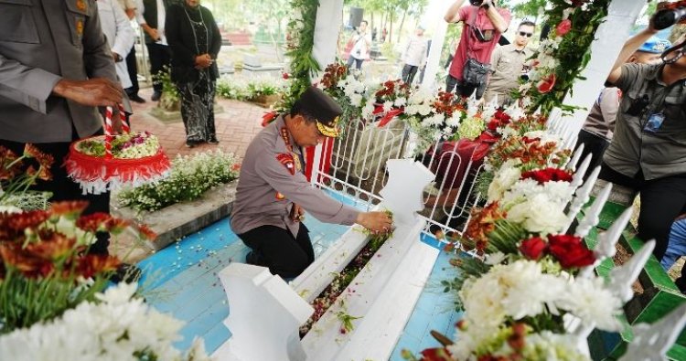 Polres Karawang, Jatim - Kapolri Jenderal Listyo Sigit Prabowo berziarah ke makam Pahlawan Nasional Marsinah di Kecamatan Sukamoro, Kabupaten Nganjuk, Jawa Timur (Jatim). Ia juga melihat rumah masa kecil dari tokoh buruh tersebut.